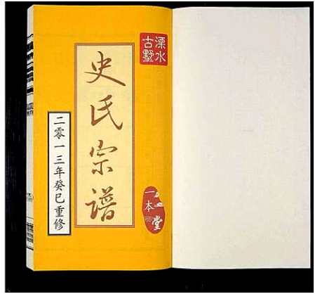 书名页题 :史氏宗谱 :溧水古墅-一本堂